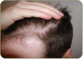 Causas: Estimulação de folículos pilosos pela testosterona. Ao atingir o couro cabeludo em pacientes com pré-disposição genética á calvície, a testosterona sofre a ação de uma enzima chamada 5-alfa-redutase, que se transforma em diidrotestosterona (DHT), que age promovendo a diminuição dos folículos pilosos, tornando os fios mais finos, e prejudicando o crescimento dos cabelos, que acabam por nascer em menor quantidade gerando calvície.
